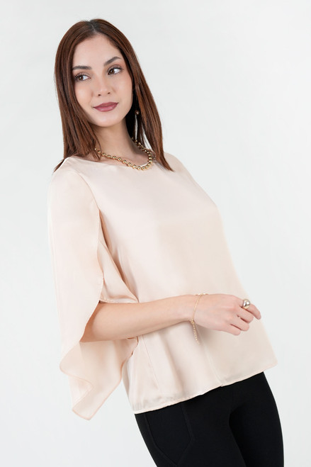 Brillo sutil con elegancia atemporal Una blusa de manga 3/4 acampanada que aporta movimiento y sofisticación a la silueta. Su escote en V estiliza el cuello con un toque moderno, mientras el corte clásico equilibra el diseño, creando...S/.139.90 -